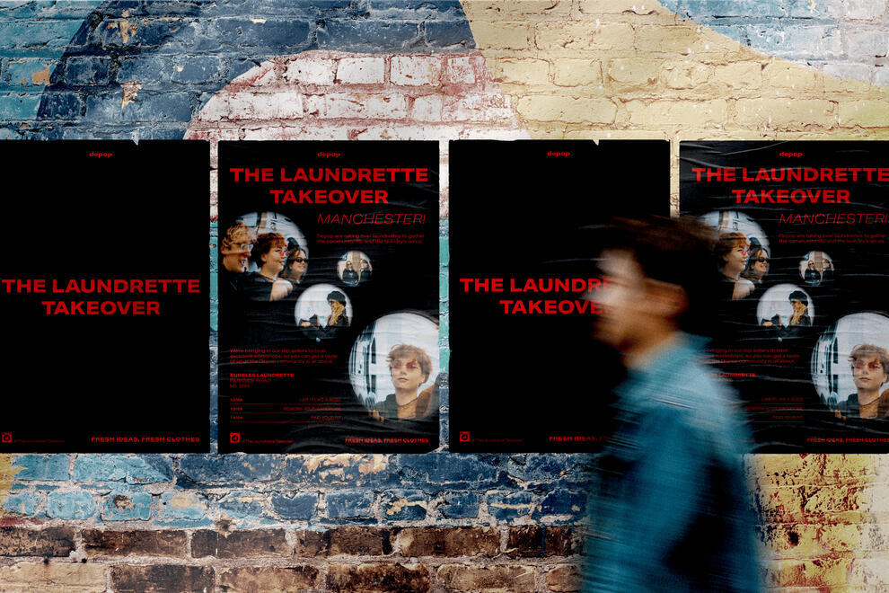 Depop’s Gen-Z audience craves authentic community spaces beyond social media, but many traditional gathering spots have lost their social function. Laundrettes, once neighbourhood hubs, now see people scrolling phones instead of connecting. Yet they offer a perfect setting for circular fashion, the cycle of washing and reusing clothes directly relating to the values Depop promotes.
