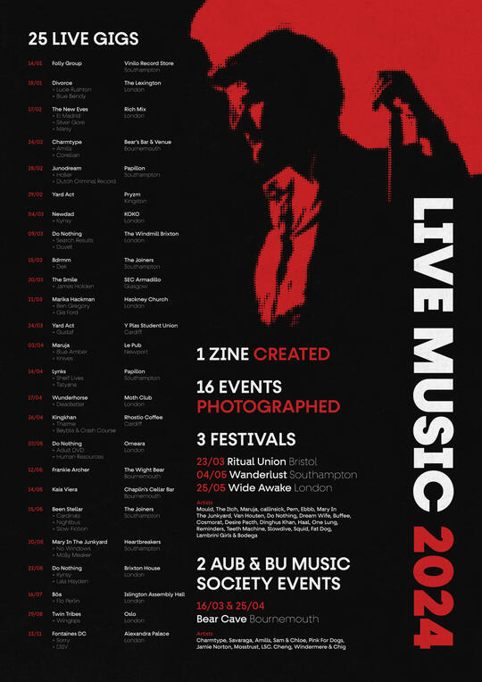 I created a limited-edition zine featuring photography and interviews with venue owners, staff, and local musicians. I printed each CMYK layer separately to mimic the misaligned litho aesthetic of vintage music magazines. The nostalgic print effects and typography reflect the authentic, DIY spirit of the grassroots music community.